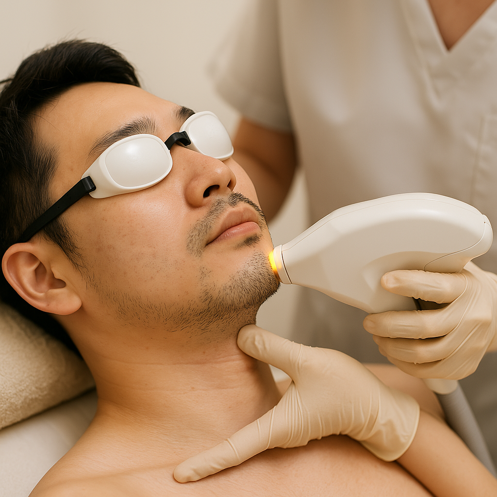 - 동양인 남성의 수염 제모에는 일반적으로 다이오드 레이저가 더 많이 사용되며, 안전성과 효율성에서 좋은 반응을 보입니다.